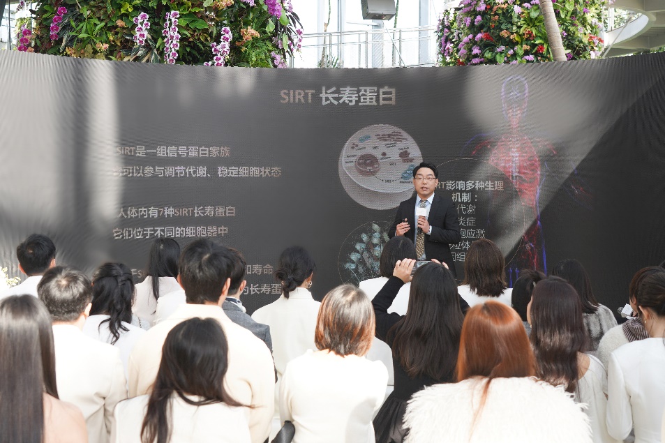 图注:雅诗兰黛集团中国创新研发中心亚太区先进技术副总裁曹健博士 而后,雅诗兰黛集团中国创新研发中心亚太区先进技术副总裁曹健博士分享了雅诗兰黛在肌肤长寿科学领域的最新研究成果:“雅诗兰黛品牌从2008年之前就开始关注到SIRT长寿肌因[6]这一全新的领域,将色提因全链网引入护肤领域。对于眼周更加脆弱的皮肤来说更需要从源头抑制衰老,我们的最新研究解锁了肌肤长寿新通路——色提因逆龄[1]因子激活SIRT6[6],从源头抑制衰老开关NF-kB。全新白金「6D黑钻眼霜」[2]运用前沿科技,从6D立体重塑眼部肌肤。” 此次白金「逆龄[1]科技研讨会」的圆满落幕,再次彰显了雅诗兰黛品牌在奢华护肤及长寿科学领域内的持续探索与突破的坚定信念。未来,雅诗兰黛将继续立足于品牌精研科技,以突破性产品创新与至臻服务体验,延续品牌逆龄[1]传奇,将奢华护肤推向新的高度。