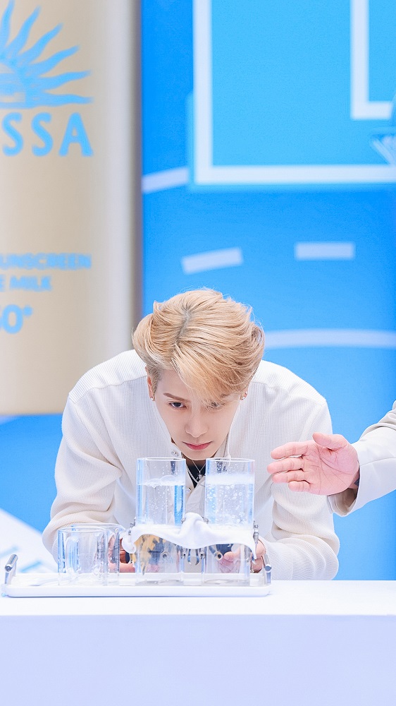 而后王嘉尔与全新安热沙小金瓶[1]一同挑战了四大防晒难题关卡,生动诠释了产品升级后的超轻肤感与超强防晒力,为全新小金瓶[1]正式加冕「防晒大膜王」称号。 现场巧妙模拟了日常生活中常见的七大防晒难题——水、出汗、闷热、湿气、表情、暴晒和摩擦,并特别设计了“黏腻小魔王”“闷热小魔王”“裂缝小魔王”和“水汗小魔王”四重挑战关卡。王嘉尔亲身体验,与全新小金瓶[1]共同应对各种极端环境,展现了其轻薄不黏腻、持久抗汗、超强抗摩擦的卓越防晒性能。活动现场互动环节趣味十足,王嘉尔更解锁多重宠粉福利,将气氛推向高潮。