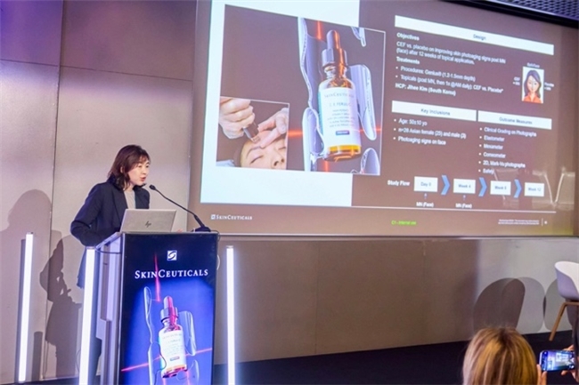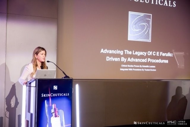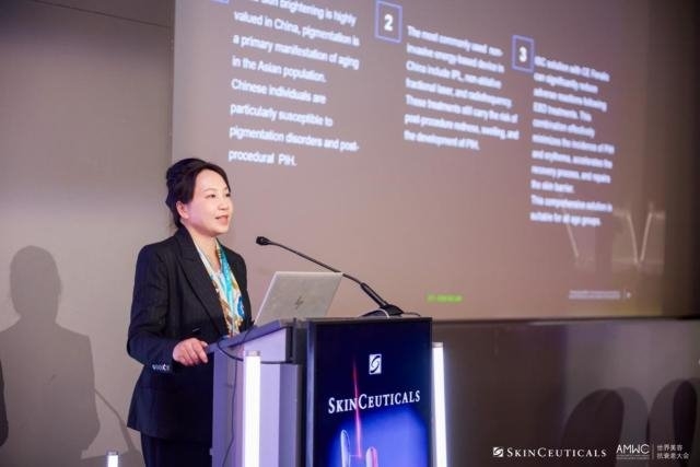 “中外视角看整全护肤未来趋势”圆桌讨论 左起北京大学第一医院吴艳教授,南方医科大学皮肤病医院杨斌教授,颜术医美创始人宋为民教授,四川大学华西口腔医院医疗美容科主任王杭教授,韩国延世大学医学院Jihee KIM教授,英国 Taktouk 诊所Wassim TAKTOUK教授 CE精华整全护肤专题会,解读整全护肤专业官配力量 作为全球抗氧化领域先驱,修丽可现场举办「CE 精华整全护肤专题会」,汇聚中、韩、美三国权威专家,基于多维度临床研究数据,揭示CE经典抗氧瓶在医美整合护肤项目作为黄金官配的科学实证依据,系统阐释CE经典抗氧瓶与光电项目协同作用的科学机制,为医美行业提供标准化联合治疗方案。 北京大学附属第一医院吴艳教授提出:美白提亮是中国消费者的一大核心护肤诉求,能够有效提升肌肤光泽度和通透感的光电医美项目因此备受热捧。并现场发布3项中国人群研究,实证修丽可黄金配比的CE经典抗氧瓶能够为不同年龄的人群提供整全的肤色管理方案:联合光电治疗项目,能够显著减少色斑、改善肤色均匀度、提升肌肤光泽度,证实其兼具术前防护与术后修复的双重功效。