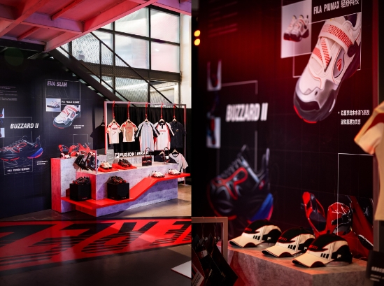 FILA FISION先锋线EXTREME RED已先后进驻国内外三地买手店 本次活动现场延续了FUSION | DUCATI联名系列的设计理念,将DUCATI PANIGALE V4的车型特点与FILA FUSION的潮流运动DNA相结合。外墙上一辆DUCATI摩托车俯冲而出的画面,打造震撼的视觉效果,凌厉线条勾勒出的先锋之躯攻占上海街头地标。随着赛道格纹进入,瞬间将人拉入一场极速运动与美学设计交织的沉浸体验中,红色灯光如同摩托车灯风驰电掣,与空间色调形成强烈冲击,每一处细节都阐述着先锋的机车精神。进入空间即可见证FILA在赛车运动领域过往取得的成就,同时领会到联名系列的设计灵感来源。 早在22年前两大品牌就曾联手,以MotoGP赛事为灵感设计赛车鞋与服装装备,FILA意大利更是签约DUCATI车队当时的顶级车手。同年,为纪念DUCATI车队赢得第200次世界超级摩托车锦标赛,双方共同推出限量200辆的限量版涂装摩托车,缔造行业佳话。多年后的今天,FILA FUSION与DUCATI再次续作经典。本次先锋线EXTREME RED系列的鞋款及配饰新品陈列于动态赛道之上,服饰单品则以悬挂的方式创意呈现,该系列融入前卫时尚的剪裁设计,精选多种高质感面料,包括优质真皮革、高耐磨性的CORDURA纱线、DERMIZAX防水和吸湿速干的 COOLMAX 面料,秉承FILA FUSION一贯的精湛工艺匠心打造。本次联名新品在保证舒适与实用性的同时,巧妙平衡运动机能与高端潮流,并汲取DUCATI PANIGALE V4车身流畅的线条元素,通过独特设计与工业质感的细节处理,营造速度感和赛道氛围,满足功能性与时尚感的双重需求。