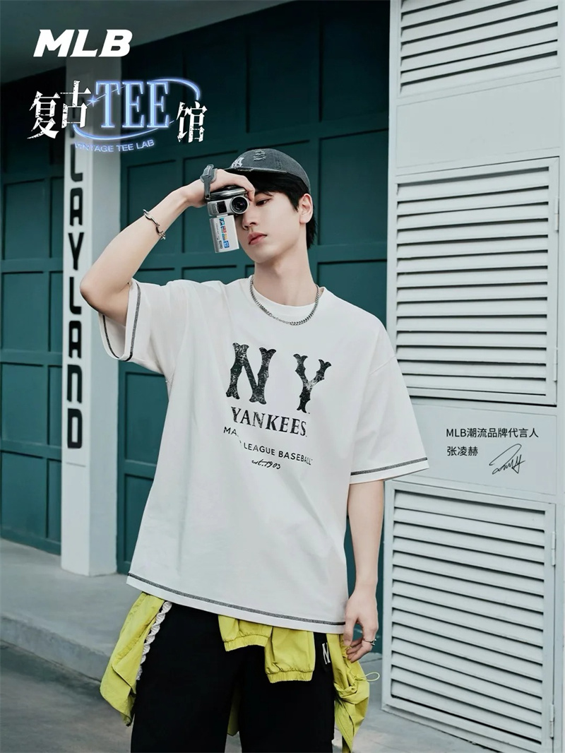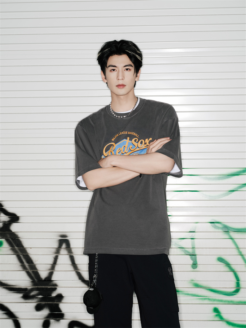 MLB潮流品牌代言人张凌赫演绎2025夏季金属灰复古胶片T恤