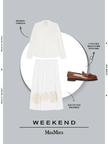 若是准备一场充满艺术气息的城市漫游,代露娃的造型则提供了另一种答案。Weekend Max Mara 2025春夏系列的刺绣衬衫与半身裙勾勒出意式闲适风情,搭配SEBAGO 联名乐福鞋,漫步于书店、美术馆间,每一秒都充满故事感。