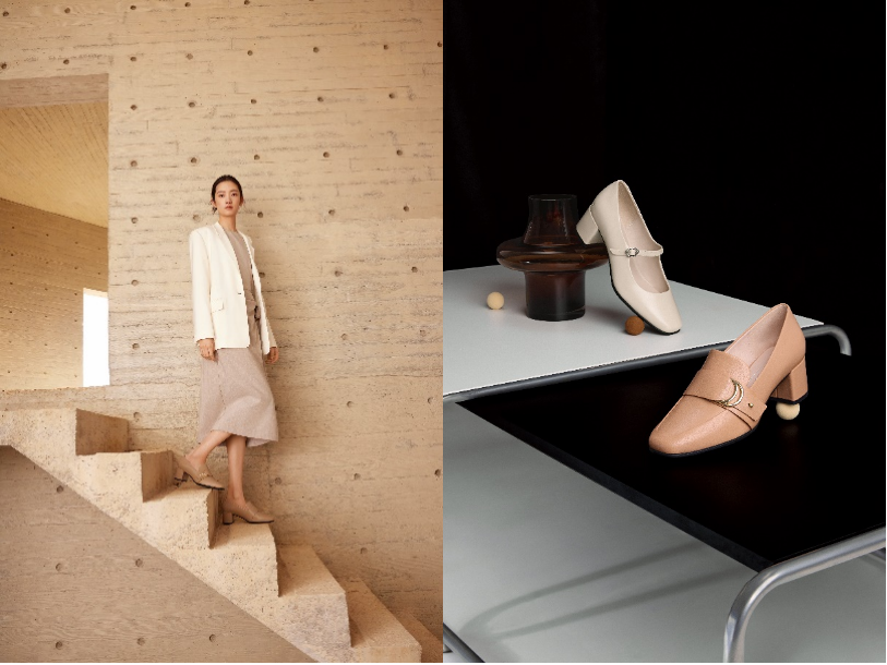 生动步伐 摩登魅力 本季全新女士正装系列以石灰色、裸粉色等柔和色调捕捉春夏特有的轻盈与明媚,唤醒美好感官体验,并采用ECCO自产的高级皮革制成,柔软材质与清新配色相得益彰,为每一步注入迷人生动的摩登魅力。全新推出的MARGOT舞悦系列以平底芭蕾舞鞋为灵感,采用皮质细带环绕鞋面,勾勒优雅轮廓;加厚覆皮鞋床与轻盈PU大底的应用为双脚提供更加舒适柔软的穿着体验;SHAPE 35 SQUARED型塑35方头系列则配备35mm的精致高跟设计,同时带来一脚套与搭扣两种款式,专为现代女性量身打造,一脚套设计使穿脱轻松便捷,搭扣设计可灵活调节松紧,两种款式均搭配ECCO标志性的FLUIDFORMTM直接注塑工艺,使其更贴合女性双足曲线,解锁优雅与舒适的平衡密码。