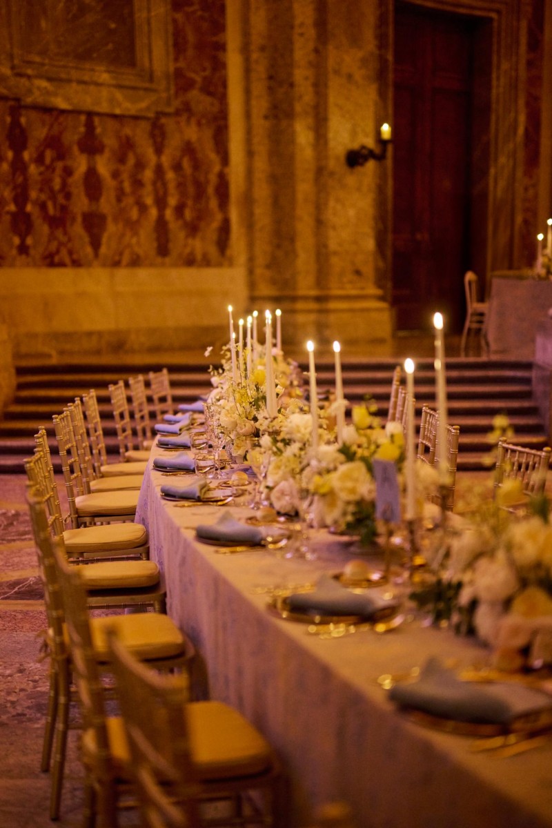 从上至下:Nicky Hilton(妮基·希尔顿),Yoyo Cao,Alexa Chung(艾里珊·钟) (图片拍摄by GERMAN LARKIN) 大秀落幕后,品牌于宫殿中庭设宴款待。宾客在金色烛光与繁盛花艺的映衬下,于长桌之间举杯畅谈,沉浸于 Max Mara 精心营造的典雅氛围中。