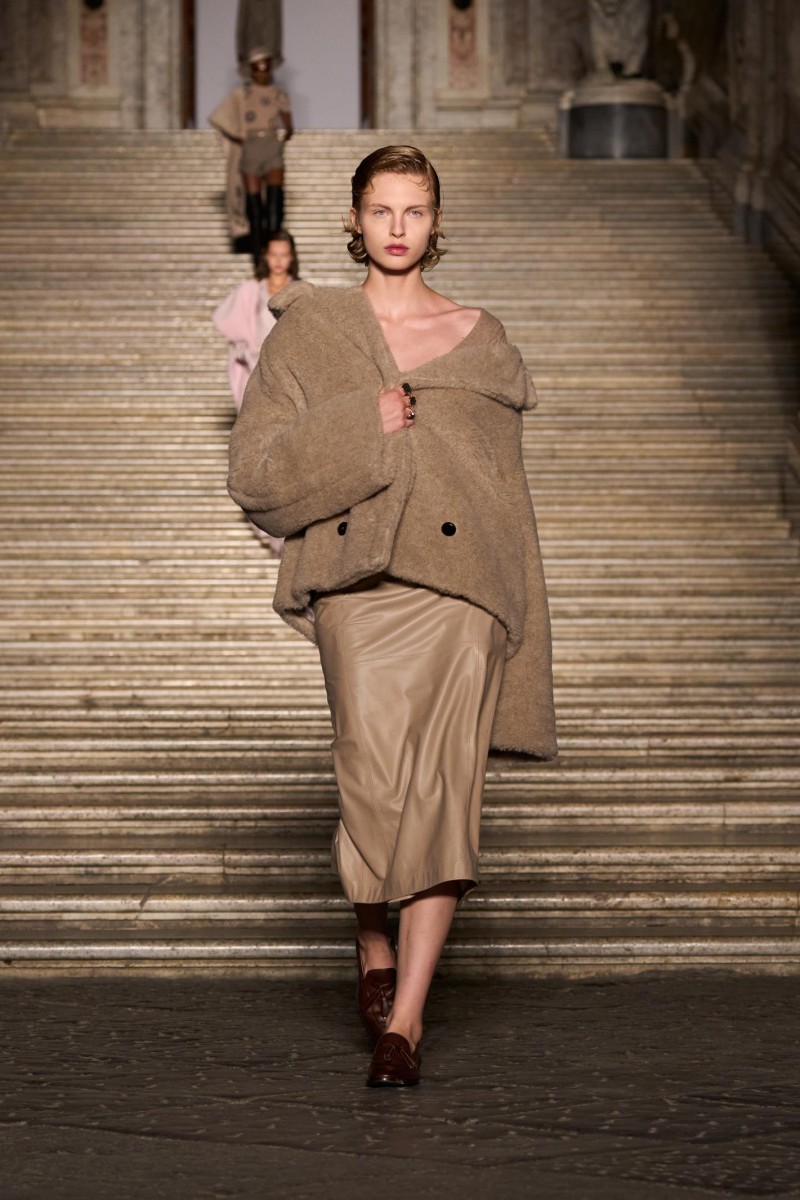 此次秀场模特阵容强大,汇聚来自全球的超 40 位面孔。其中,黛瓦·卡塞尔(Deva Cassel)和列侬·索伦蒂(Lennon Sorrenti)备受瞩目:前者为意大利国宝级女星莫妮卡·贝鲁奇(Monica Bellucci)与法国演员文森特·卡塞尔(Vincent Cassel)之女,后者则是著名摄影师马里奥·索伦蒂(Mario Sorrenti)的女儿。两位风格各异的新生代缪斯,以天赋与姿态诠释 Max Mara 对多元女性魅力的恒久礼赞。