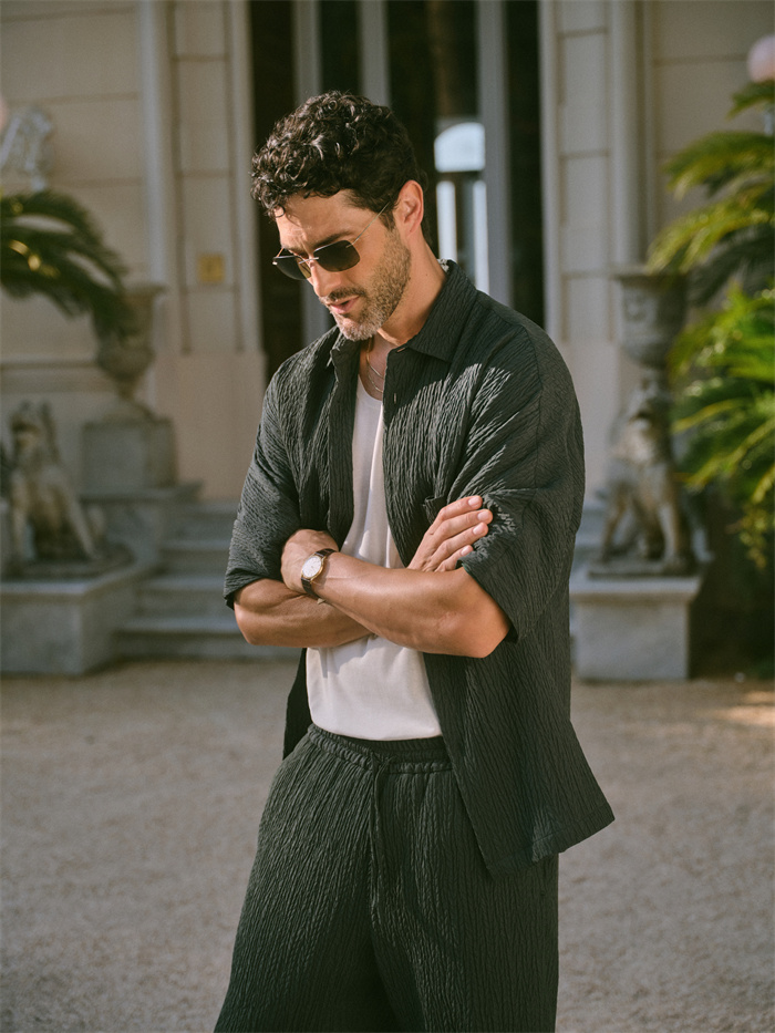 “ESTATE” 一词蕴含双重意境——在意大利语中意为"夏日",英语中则指"宅邸",既象征着季节的诗意,又传递了彼此对理想生活与夏日情调的共同愿景。 品牌挚友、青年演员王星越身着联名系列的MONOGRAM徽标交叉领衬衫及长裤莅临开幕盛典。