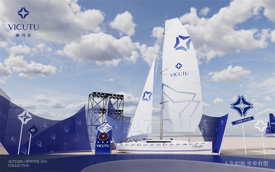 VICUTU这次玩真的,四大地标带你边逛边悟 在大秀的策划中,VICUTU巧妙融入了阿那亚独特的地域文化和精神内涵,于阿那亚构筑了一套可触、可感、可沉浸的风格探索地标,更是对中产男性精神旅程的隐喻:从迷茫到方向,从奔波到从容,从迷失到找回——分别对应海、陆、空与无限哲思,邀你亲身走入“型游海上”的每一个维度: 乘游帆船 — 亲手掌舵,你来说往哪走 在这里,你将亲手执掌舵轮,在模拟海景中确定前行方向。海风拂面,帆影摇曳,每一个选择都象征着风格探索中的理性与感性交融。