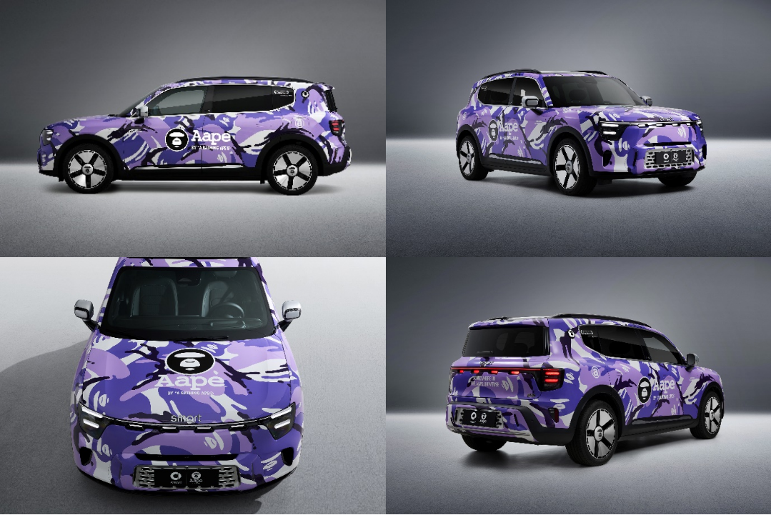 街头潮流品牌AAPE携手新奢智能电动汽车品牌smart首次破界合作,共创全球独一无二的豪华紫色迷彩联名版smart#5纯电动汽车。在这场灵感与态度的碰撞之旅,双方打破速度与潮流的美学象限,将AAPE的街头无畏基因融入smart的先锋科技内核,拥抱都市年轻族群敢于出彩的自由与开放精神。