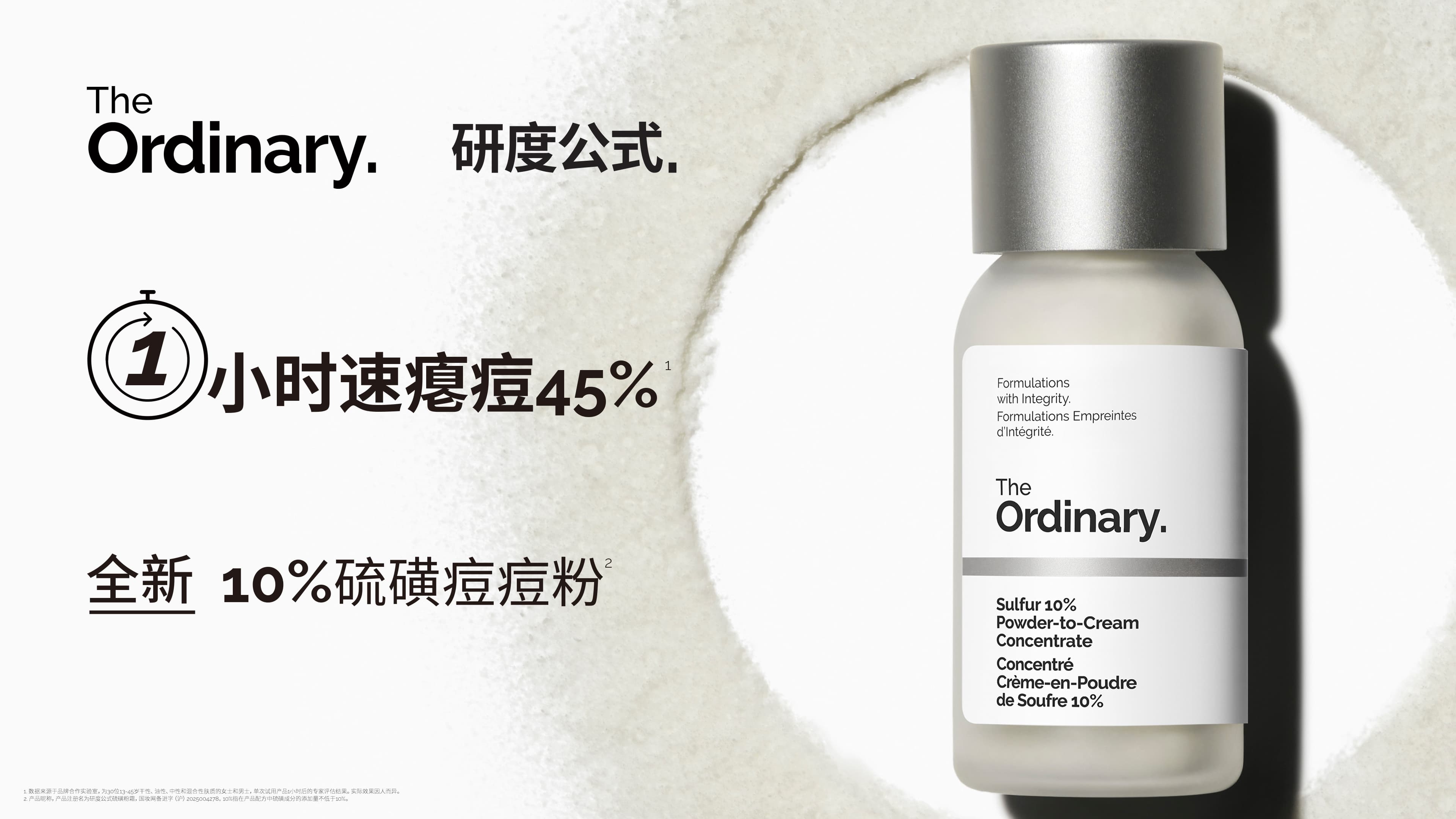 新品亮相:10% 硫磺痘痘粉 此次快闪活动同时也重磅推出了新品10%硫磺痘痘粉:核心成分10%胶态硫,搭配4%烟酰胺和5%左旋肉碱,实现“祛痘+控油+褪红”三效并行,实验证明1小时即可速瘪痘 45%(1),敏感肌也能使用。