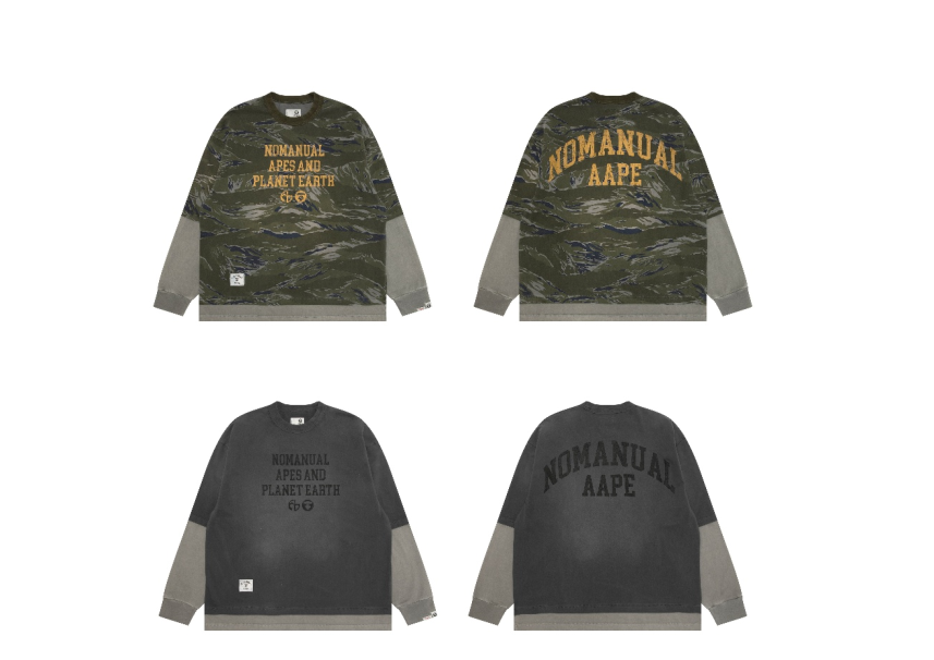 AAPE × NOMANUAL®假两件长袖TEE RMB 979(卡其色) RMB 899(浅黑色)