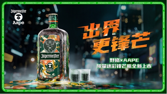 *理性适度饮酒,才是真酷;未成年人、孕妇请勿饮酒;酒后请勿驾车;本内容仅面向18周岁及以上成年人,请勿将此内容转发给未成年人。 2026年1月15日,德国先锋利口酒品牌野格(Jagermeister)与国际知名街头潮流品牌AAPE首度破界联手,以「出界更锋芒」为核心企划主题,重磅官宣跨界联名。双方将野格的冒险基因与AAPE的潮流内核深度交融,推出「迷彩锋芒瓶」与「迷彩锋芒箱」两大潮夜专属联名产品,打破酒饮与潮流的传统边界,为Z世代呈现一场兼具个性表达与文化共鸣的无界夜晚潮流盛宴。