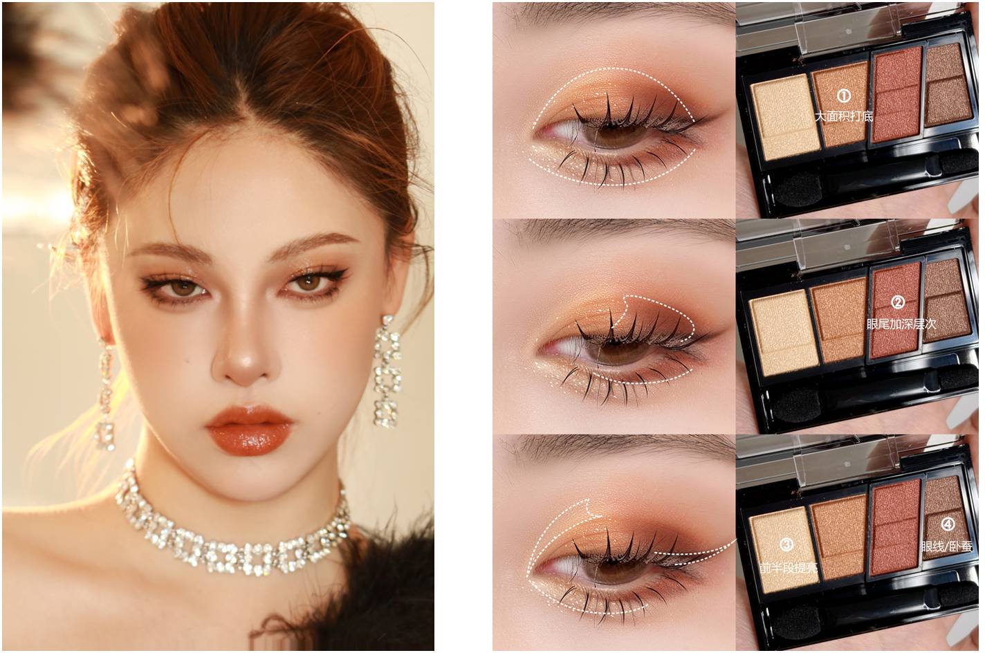 “美拉德”配色风潮的灵感来自食物烹饪过程中的“美拉德反应”。食物从生到熟,糖类和蛋白质在碰撞中融合,表面焦化褐变,与秋日的层林尽染、愈发浓烈的色彩有着异曲同工之妙。“美拉德风”简单诠释就是咖色系、焦糖色系、大地色系再叠加小部分橘红色等亮色进行点缀,用温暖浓郁的色彩给人以舒适疗愈,与“秋日童话”完美适配。 倘若你当下正寻觅一种复古时髦、高级又显气质的时尚风格,那“美拉德风”或许是你的质感首选。秋日里微醺的光,带来一点点慵懒和松弛感。颇具格调的美拉德如何融入日常生活中?花王携旗下明星产品,伴你共同解锁“美拉德风”在妆容、发色、穿搭的“典雅和精致”。 “美拉德”金棕配色 千金妆演绎秋日童话 “美拉德”的金棕配色,散发着活力与温暖、惬意的格调之美。用KATE“全新造型棕影眼影盒”打造金棕色千金妆,“妆”点你的秋日氛围,邂逅浪漫奇遇。 底妆:KATE新升级的黑管遮瑕粉底液(光泽型) pick清透裸感陶瓷肌。 眼部:全新造型棕影眼影盒BR-4 ①浅米色眼影打底,红棕色加深眼尾眼头。②咖色加深眼尾,下眼睑亮片提亮。 睫毛:KATE定型卷翘睫毛膏 唇膏:KATE梦思特唇膏#04少量多次叠涂向外晕染,水光感烤栗子色,适配千金气场。 小Tips:睫毛膏刷头竖起带过下睫毛,睫毛存在感立现。