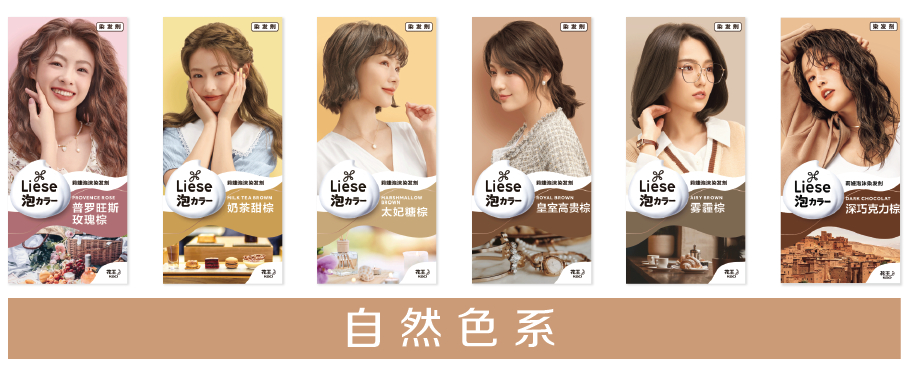 (图片来源于:达人@ByTiffany、@Damo大猫) “美拉德”棕系发色 彰显秋日优雅与深邃 优雅吸睛的妆容,更少不了靓丽富有质感的发色点缀。从“三分熟”的奶茶甜棕,到温暖的普罗旺斯玫瑰棕,再到“七分熟”的深巧克力棕,“莉婕(Liese)”自然色系列的各种轻柔“棕色调”诠释出秋日“美拉德风”的精致与典雅。低饱和度的醇厚色系,带来浓浓秋日暖意。 “花王莉婕泡沫染发剂”采用花王研发的高粘度小直径泡沫,挤出时是易涂抹的高延展性滑滑泡,无需分区上色;揉搓后是能包裹住头发的高粘度泡,不易因重力滑落,持久附着每根发丝不滴漏,发根不消泡。无需浴帽便可轻松实现全头“均匀上色”,在家即享“沙龙级”染发效果,让发丝沉浸于“美拉德”的色彩游戏中。