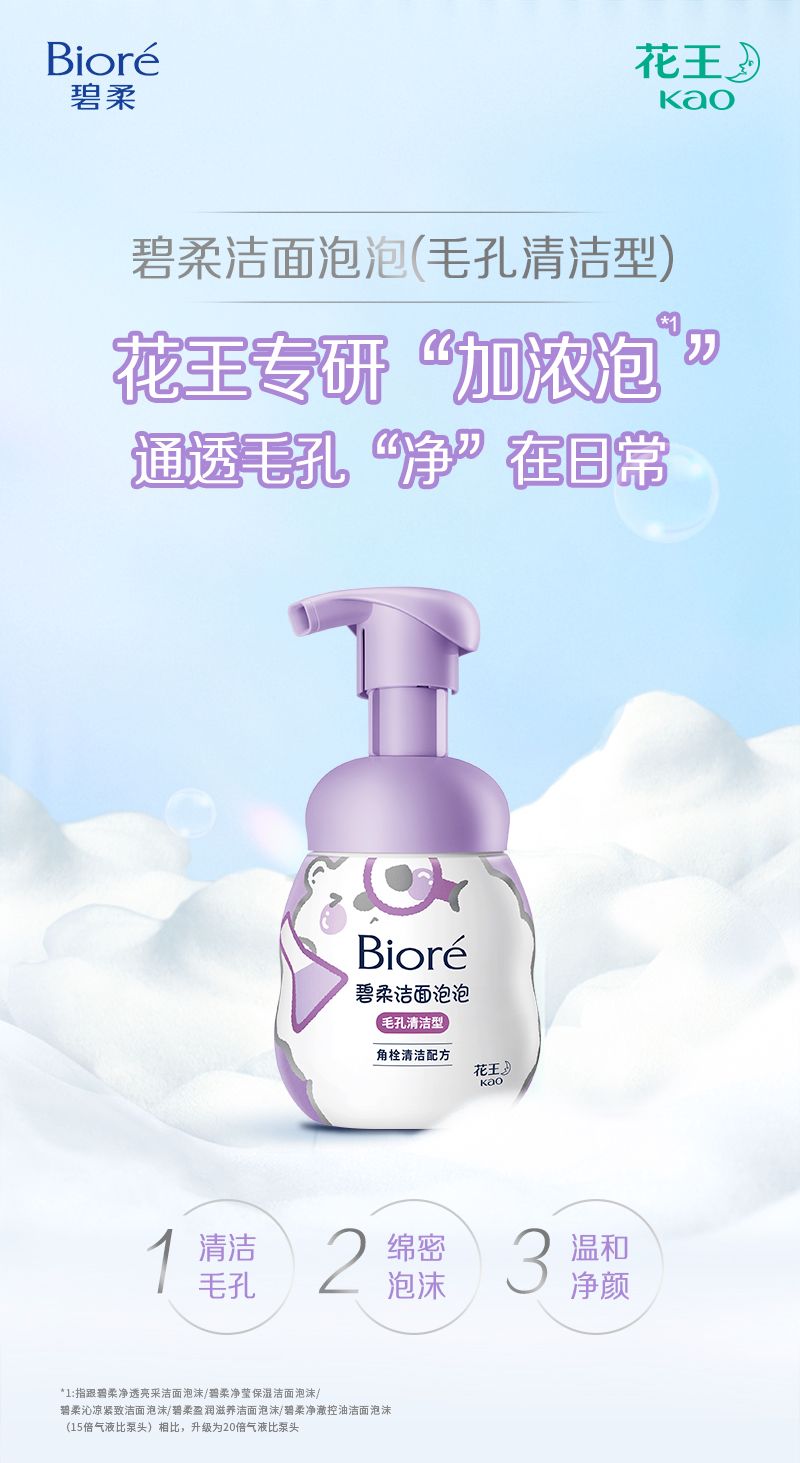 在肌肤清洁领域,花王旗下“碧柔(Bioré)”品牌一直以来致力于为生活者提供清新、舒适、有趣的洁面体验。新年伊始,“碧柔”特别推出全新毛孔清洁型洁面产品——“碧柔洁面泡泡(毛孔清洁型)”,为你的肌肤注入清新活力焕发自然光彩,开启美肌新篇章。