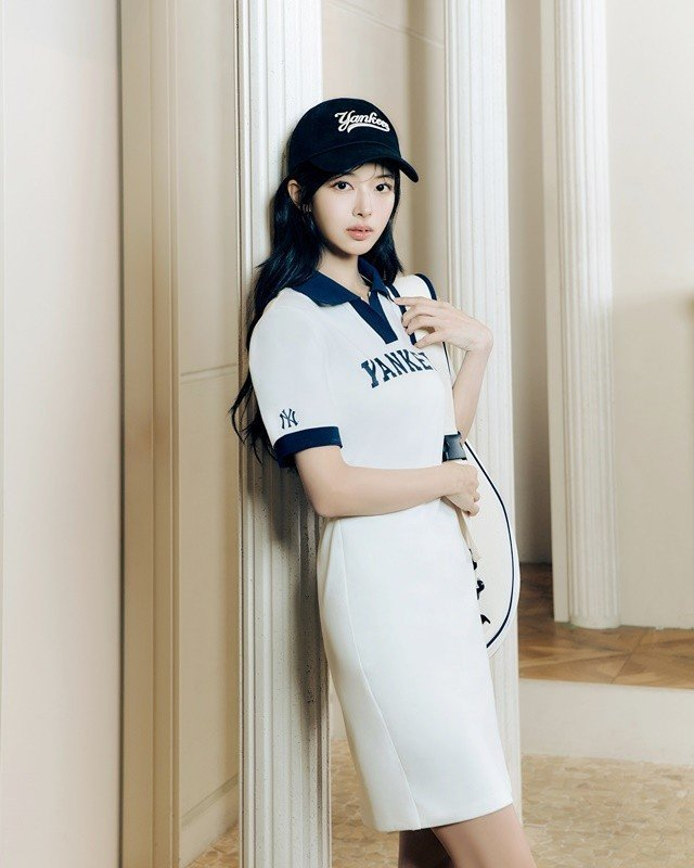 MLB潮流品牌代言人虞书欣演绎2024夏季T-SHIRT系列VARSITY拼色短款T恤