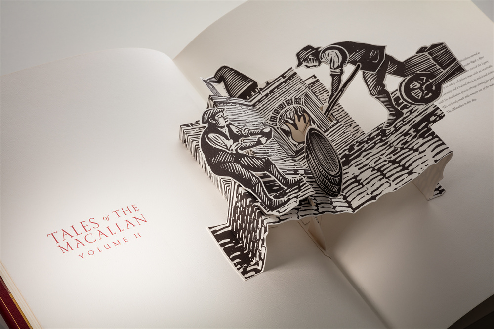 此外,英国古法手工书册装订商Shepherds,Sangorski & Sutcliffe和Zaehnsdorf,为麦卡伦传奇系列第二卷手工打造了精美的“包装”,即盛放酒樽的八百页年鉴,淋漓尽致地体现了他们的超卓技艺。而位于法国巴黎的手工印刷厂Imprimerie du Marais则使用专门开发的纸张、油墨和印刷工艺,确保了整本年鉴的出色印刷品质。
