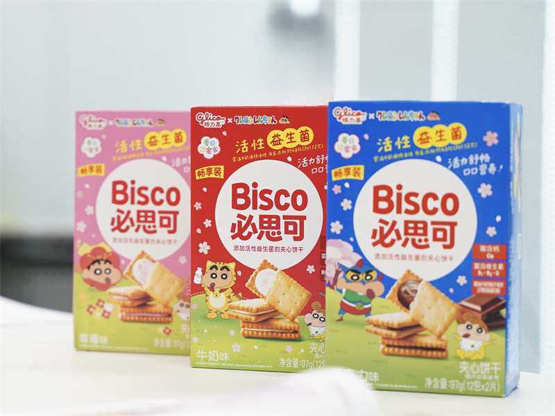 在日本,Bisco必思可作为儿童零食的专业安心之选,直销各地的保育园和幼儿园,陪伴了几代孩子的成长。2022年,Bisco必思可走出海外正式进入中国市场,率先抢占益生菌饼干这一细分品类赛道。时至今日,Bisco必思可凭借过硬的产品品质成功赢得消费者的信任,依靠品牌背后沉淀91年的美好愿景立稳中国市场,成为益生菌饼干赛道佼佼者。从过去到现在,乃至未来,Bisco必思可始终将儿童健康放在首位,通过持续性的产品升级和创新研制打造健康安心的产品,陪伴孩子茁壮成长。 为满足消费者在不同使用场景下的不同需求,除了草莓、牛奶口味之外,2023年最新引进巧克力口味,迎合更多儿童喜欢的口味,“益”起快乐成长。在包装设计上,Bisco必思可设计了多种不同规格,除了原有的12包盒装(每小包2片)以及24包袋装(每小包2片)外,今年又新推出了3包盒装(每小包5片)。每款皆采用便携独立小包装,小方尺寸,一口一个。无论是朋友聚会、家庭聚餐,亦或是休闲旅游,随时随地补充能量、解馋充饥,满足多元化的使用场景需求。