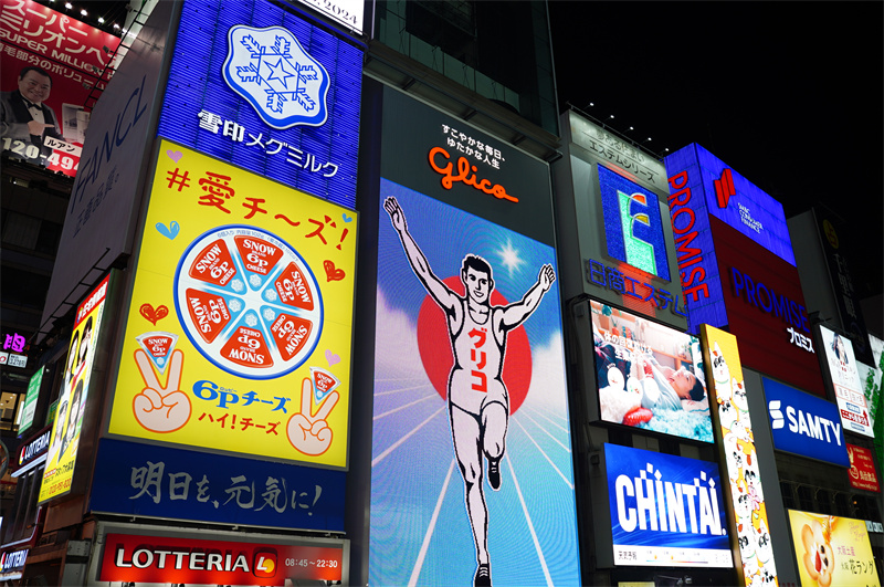 去过日本大阪道顿堀的游客,肯定会对树立在心斋桥中心位置的巨型“格力高广告牌”印象深刻。高举双手冲刺的“奔人”形象,自1935年首次亮相以来,吸引了无数游客前往打卡、“同框合影”。在2003年,更是被评为“大阪市指定景观形成物”,成为一代代大阪人心中的城市代名词。