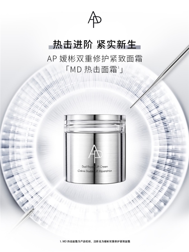 高端前沿专业美容科技,点亮护肤新灵感 AP嫒彬以韩国专业美容科技为灵感,针对消费者接受专业美容项目之后出现的特定皮肤问题,深入分析消费者需求,提供令肌肤状态更上一层楼的护肤整合方案。 在光电类或热玛吉等专业美容项目后,皮肤常常会在恢复期间出现不同程度的问题,造成红肿、炎症或干燥的困扰。这些问题如果得不到及时正确的处理,不仅会影响项目术后效果,还可能引发更严重的皮肤状况。因此,科学合理的术后皮肤管理尤为关键,正确的修护措施不仅可以加速恢复期,还可以显著提升项目效果。 AP媛彬M.D.美容护肤系列,添加两大专业美容级专利成分,为项目协同增效,封闭式超导膜独特质地技术促进产品吸收,帮助肌肤在专业美容项目后快速修护,实现更加紧致的全新肌肤状态,为解决消费者在皮肤管理后面临的挑战,提供了专业的解决方案。