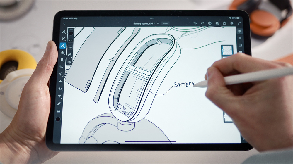 精巧设计与持久续航 为全天候舒适佩戴而设计 Dyson OnTrac 降噪耳机实现声学表现与舒适度的精巧平衡,并已获得美国人体工程学协会认证。产品从马鞍的设计汲取灵感,在重量和质感上取得了平衡,实现长时间舒适佩戴。高容量电池被巧妙地置于头梁中,将重量均匀分布在左右两侧,减少佩戴时对头部的压力。耳垫则采用超细纤维制成,柔软贴合耳朵、舒适透气,并提供优异的被动降噪。在主动降噪模式下,耳机续航时间长达 55 小时;快速充电10分钟,聆听时长可达2.5小时。