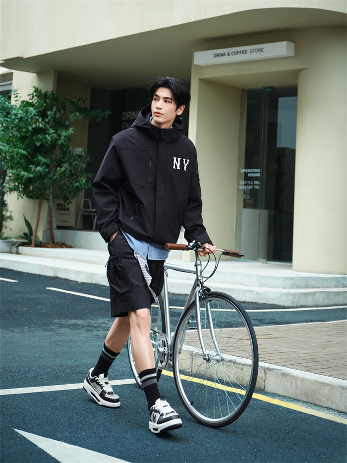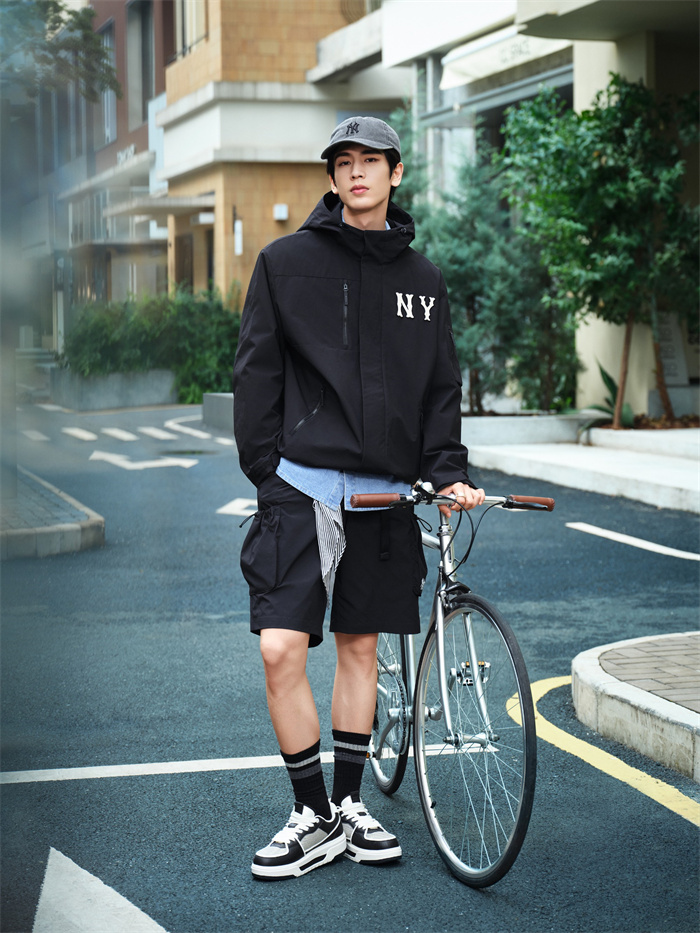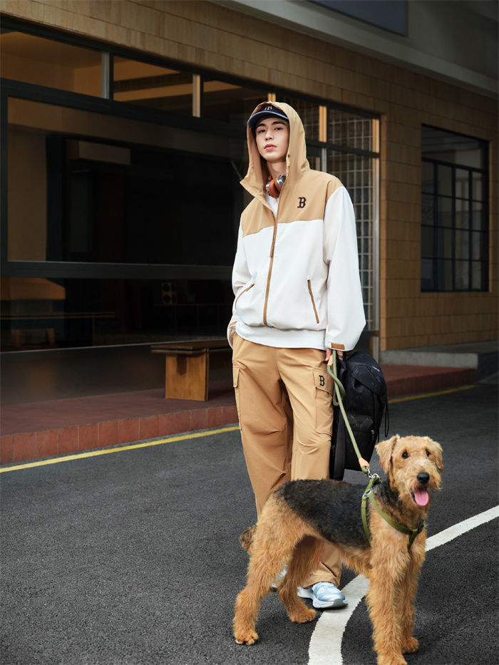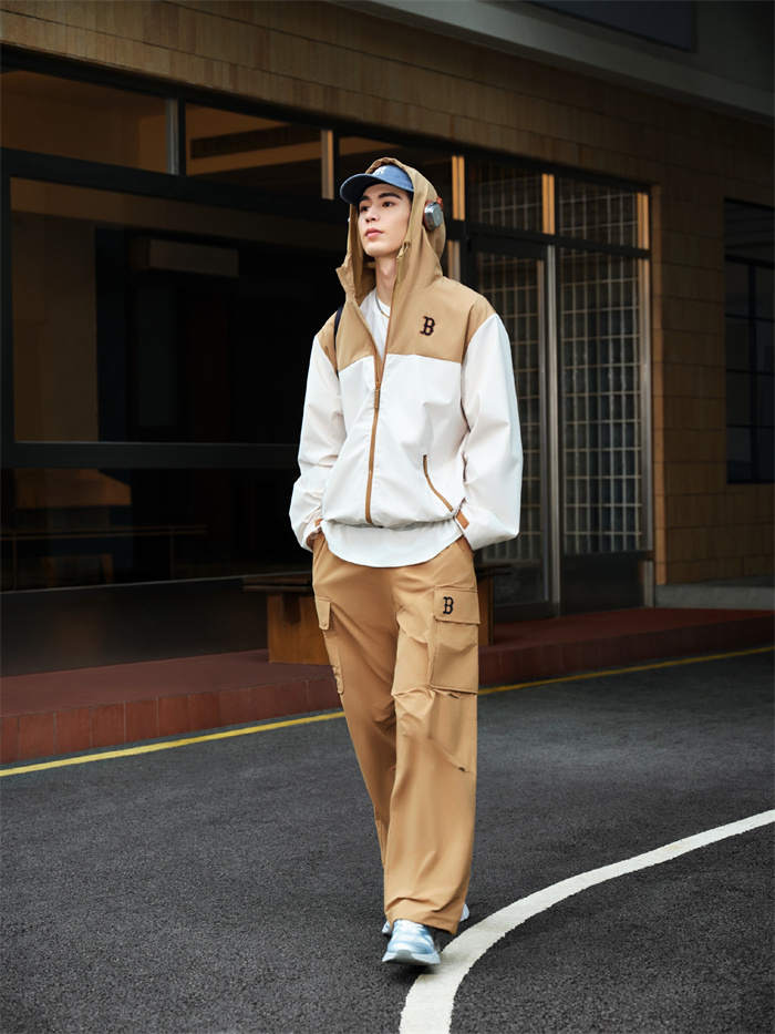 本季灵感进阶,以上下色彩拼接蕴入视觉交叠色彩层次,打造全新拼色款防风衣单品,背标加以反光大LOGO设计释放洒脱个性,轻松凸显街头属性。MLB潮流品牌大使张凌赫身着GORPCORE果壳棕防风衣叠戴棒球帽,驻足于街头畅享潮宠时光,定格漫步街头的率然身姿。