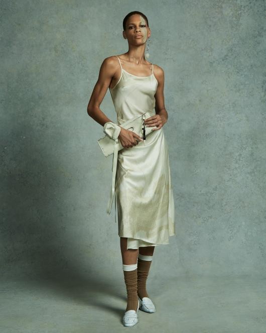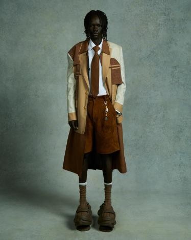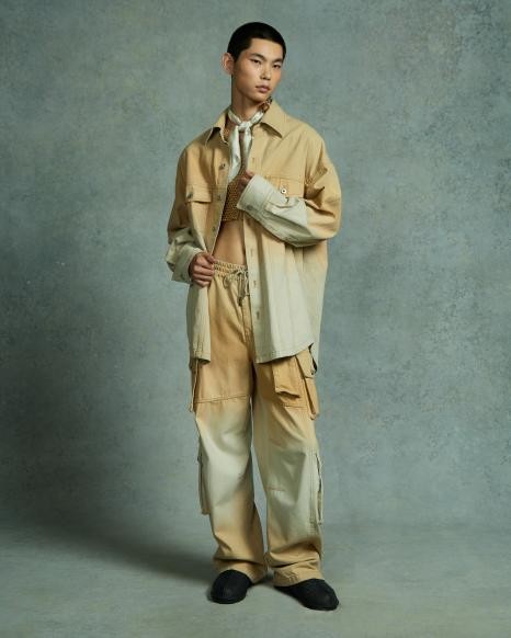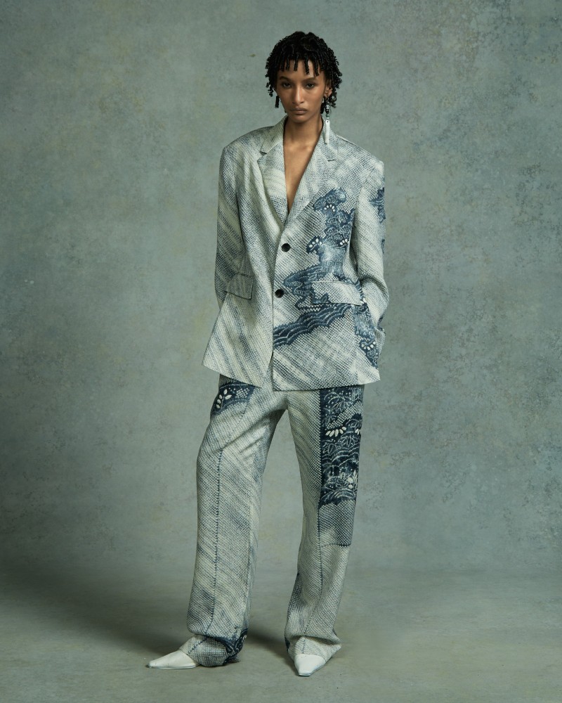 系列大片捕捉到了设计中的灵动与沉稳:细腻的纹理、独特的廓形,伴随色彩从温暖的落栗色到宁静的竹月色渐次过渡,每一件作品都淋漓尽致地展现了手工工艺的精湛之美。传统材质与富有未来感的现代服饰完美交织,焕发出独特且富有张力的视觉效果。模特的松弛站姿无意抢夺焦点,而服装的精美工艺和巧妙剪裁则成为这一视觉叙事中的真正主角。