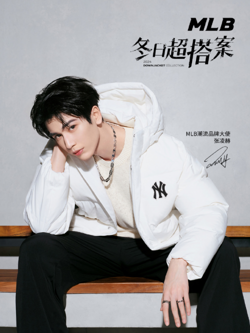 MLB潮流品牌大使张凌赫演绎2024冬季怀特白连帽背标短款「超搭」羽绒