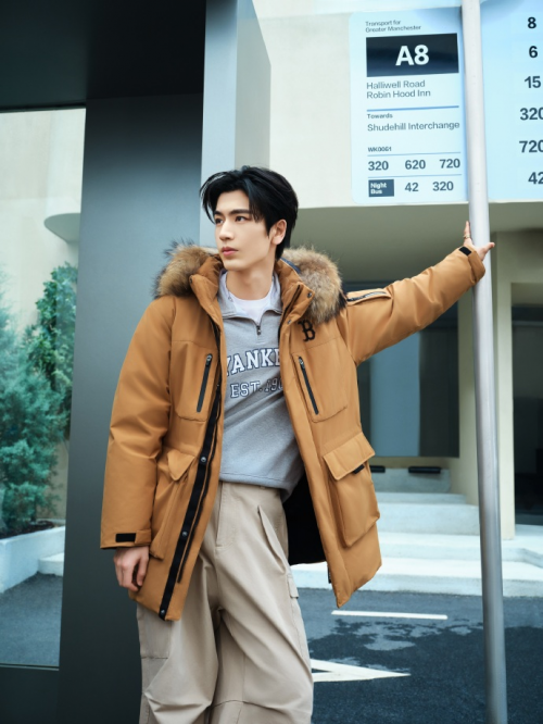 MLB潮流品牌大使张凌赫演绎2024冬季落叶棕工装羽绒