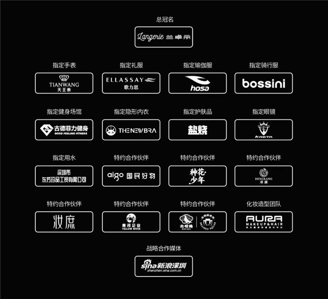 本次大赛的成功举办,离不开各赞助商的大力支持。以兰卓丽为首的各大品牌为大赛提供了丰富的资源和有力的保障,让赛事的影响力和规格得到了极大提升。绚烂的灯光、精美的布景,配合着选手们的精彩演绎,打造出了一场如梦如幻的时尚大秀。赛事收获了满满的好评,口碑爆棚,已然成为时尚界的标杆性活动。 本次大赛圆满落幕,特别鸣谢:大赛独家冠名品牌Langerie【兰卓丽】、大赛指定用表天王表、指定礼服歌力思、指定瑜伽服浩沙、指定骑行服堡狮龙,指定健身场馆古德菲力、指定隐形内衣方塔科技、指定护肤品盐烧,指定眼镜克里特,指定用水东方珍品,大赛特约合作伙伴爱国者国民好物、种花少年、邓康、妆庶、黄河企业、光明乳鸽,以及大赛战略合作媒体新浪深圳。
