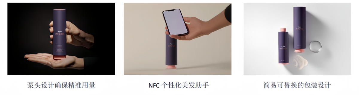戴森Chitosan™润养造型系列产品的泵头经过戴森工程体系严格测试,为精准控制每一次按压的用量而设计,减少浪费和过量使用的同时确保每一泵用量都可控。同时,瓶身中含有NFC芯片,使用手机简单触碰就可以完成全新互动体验,直接链接戴森微信官方小程序,随时随地解锁造型指南。此外,戴森Chitosan™润养造型系列所有的正装产品均采用可替换包装设计,用户可在产品用完后购买补充装,原泵瓶可循环使用,简单操作即可完成替换。