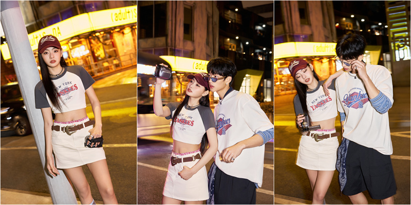 本季,MLB复古COOPERS T恤焕新登场,以全新COOPERS LOGO设计碰撞光圈白、像素黑、千禧粉、废土棕,打造长款及露腰短款两大版型短袖T恤,张扬LOGO设计,聚焦街头美学。其中,长款复古COOPERS T恤兼具UPF40+防晒功能与接触瞬间凉感性能,焕新夏日舒适体验。MLB潮流品牌代言人虞书欣与张凌赫于夏意街头,分别演绎光圈白复古COOPERS T恤,搭配MLB品牌复古棒球帽,头戴耳机与复古DV机加持酷飒气场,传递街头夏日摩登格调。