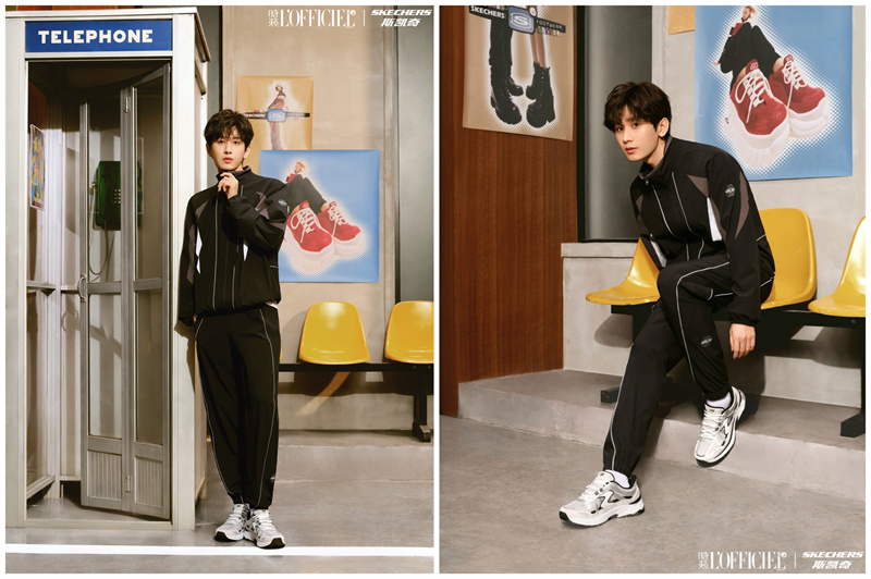 作为 90 年代街头场景的标志性符号之一,老式电话亭承载着投币拨号、等待未知信号的时代记忆。 在此场景中,成毅上脚斯凯奇 STAMINA SPORT 银翼鞋,搭配全黑运动套装,演绎复古运动美学。 银翼鞋以经典老爹鞋为蓝本,鞋面采用哑光金属色 PU 皮革、反毛皮与密织网布拼接,搭载 SLIP-INS 闪穿科技,轻质 EVA 中底与 AIR-COOLED 记忆鞋垫提供舒适体验,实现跨越时空的“连接”。
