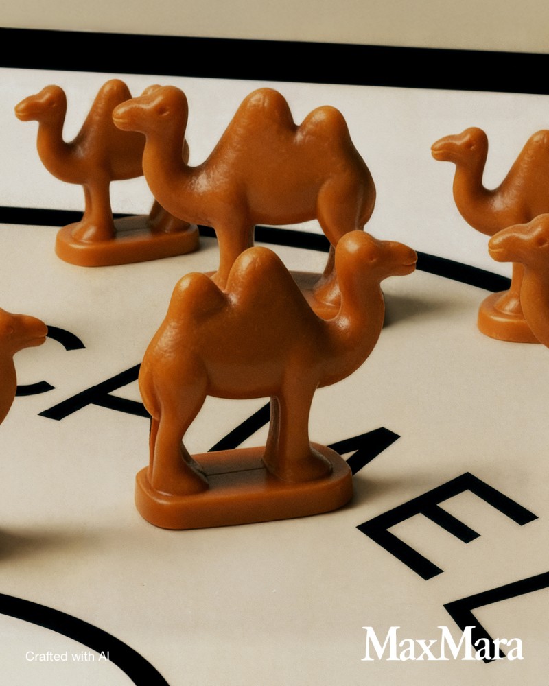 驼色的独特魅力,不仅仅体现在其视觉上的高级感,更在于 Max Mara 对材质的精心挑选与工艺的持续创新。源自东亚戈壁沙漠的双峰驼驼绒,以细腻、柔软和温暖著称,是 Max Mara 面料的珍贵来源。 为了深入传递这一珍贵材质背后的工艺故事,Max Mara 特别推出了“驼绒寻秘”线上互动游戏。玩家将通过棋盘游戏的形式,深入东亚戈壁沙漠,认识双峰驼,了解珍贵驼绒如何诞生;走进 Max Mara 的工坊,体验原料的挑拣与分级,面料的织造修补与质检一系列流程,直至亲手“制作”一件经典大衣。通过互动设计与趣味场景,感受驼绒的温暖与品牌对工艺的执着追求。
