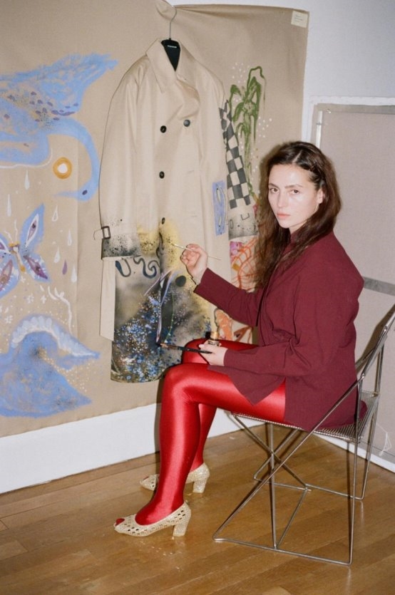 切斯科·博纳米 (Francesco Bonami) “我们的初衷是借助一件经典单品,为艺术家提供个性化表达的平台。因为时尚的本质,正是为观者呈现与众不同的视角。”博纳米说道。 维多利亚·科舍列娃自幼浸润于艺术环境之中,并将视觉艺术视为表达内心声音最自由、最包容的媒介。她常将自己的创作定义为“赛博表现主义”(cyber expressionism),强调在数字时代背景下,对人物内在情绪与灵魂状态的深层探寻。在此次合作中,她将风衣视为“画布的延伸”。她直接在风衣的样衣上进行创作,绘制了多种图案,再由 Weekend Max Mara 以印花形式进行复现。对科舍列娃而言,风衣不仅是一件衣物——它宛若一道帷幕或一袭舞台戏服,棋盘格、眼睛装饰图案、繁复涡纹与花卉等元素在风衣上和谐共融。这一创意的灵感源自她对魔术师的戏剧风格、面具及形象的持续思考,魔术师是在她作品中反复出现的主题角色。“这件风衣象征着一种情绪、一种状态、一种姿态。穿上它,仿佛在演绎一段戏剧、编织一场梦境,或探讨一些未解的谜题,其意义远超装饰本身。”科舍列娃说道。