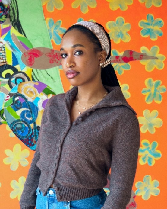 保拉·皮维及她的作品 出生于纽约哈莱姆区的艺术家察巴拉拉·塞尔夫,擅长通过绘画、拼贴与装置艺术探讨身份与符号的文化意义。她将艺术视为连接社会现实与个体经验的媒介。她设计的风衣采用漆面处理的粉彩黄色,并点缀其标志性的粉色“无限之花”(Infinity Flowers) 图案,象征着大自然的脆弱与转瞬即逝之美,也隐喻人类生命状态与持续蜕变的本能。“无限之花”如同年复一年绽放的多年生植物,启示我们蜕变是人类与生俱来的本能。这件可穿戴的艺术杰作采用压印工艺,灵感源于古老的蜡染技艺。