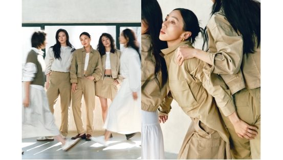 天丝牛仔(Tencel Denim)系列 与此同时,卡其(Khaki)系列服饰依托现代舞的艺术张力与纯粹意境,使都市卡其(Urban Khaki) 脱离传统的“硬朗工装”标签,以干净的视觉语言、利落的廓型和实用性的设计,成为极具质感的Clean Fit美学代表。其纯粹的极简设计不仅能从容应对城市多元场景的切换,更消解了繁复的穿搭焦虑,让女性在日常的每一个瞬间,都能感受到为生活“留白”的轻盈与自在。